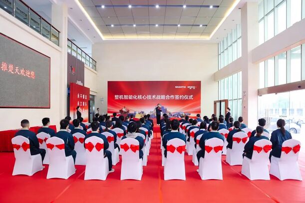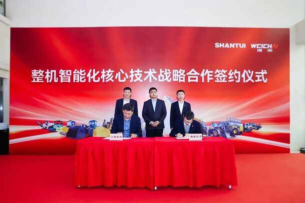 3月12日,山推與濰柴整機智能化核心技術戰略合作簽約儀式在山推楚天公司舉行,標志著雙方合作邁入“核心技術共研、產業鏈自主可控”新階段,將為工程機械智能化、綠色化、無人化發展注入新動能。山東重工集團,山推股份公司、濰柴動力相關領導出席了簽約儀式。