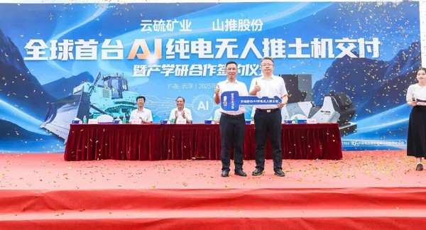 2025年9月2日,在被譽為“東方硫都”的廣東云浮,山東重工旗下山推全球首臺AI純電無人推土機交付儀式暨產學研合作簽約儀式隆重舉行。