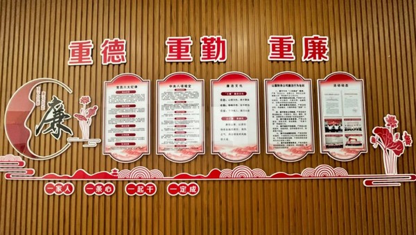 山重財務廉韻財司文化陣地。以“山之重 清廉風”為主題,構建三級廉潔文化陣地,以廉潔文化墻為主陣地,深度融入“三重”廉潔文化核心理念,立德于行、踐勤于身、鑄廉于心;以黨員清風角為分陣地,定期展示清廉建設動態信息,望廉而喜、見廉思齊、擇廉而從;以員工活動空間為微陣地,常態化開展紀法普及與廉潔提醒,舉頭學廉、低頭思廉、帶頭踐廉。